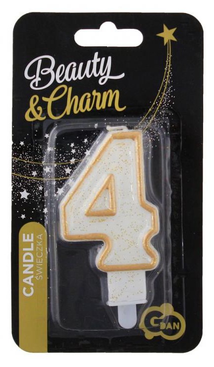 Χρυσό κεράκι τούρτας με γκλίτερ Αριθμός 4