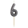Κερί με μαύρο γκλίτερ σε σχήμα αριθμού 6 για τούρτα 11×3.5 cm